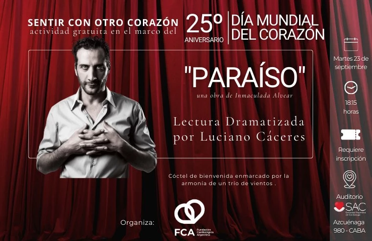 La Fundación Cardiológica Argentina se suma a la conmemoración de los 25 años del Día Mundial del Corazón con una propuesta artística y emotiva: el evento “Sentir con Otro Corazón”. La cita es el próximo martes 23 de septiembre en el auditorio de la Sociedad Argentina de Cardiología.