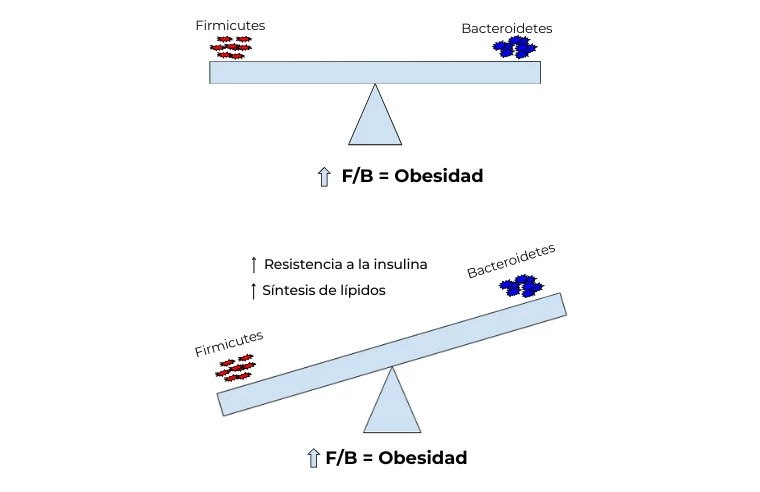 También está demostrado que la mayor cantidad de Firmicutes (bacterias de la microbiota ) sobre bacteroidetes predispone al riesgo de tener mayor obesidad.